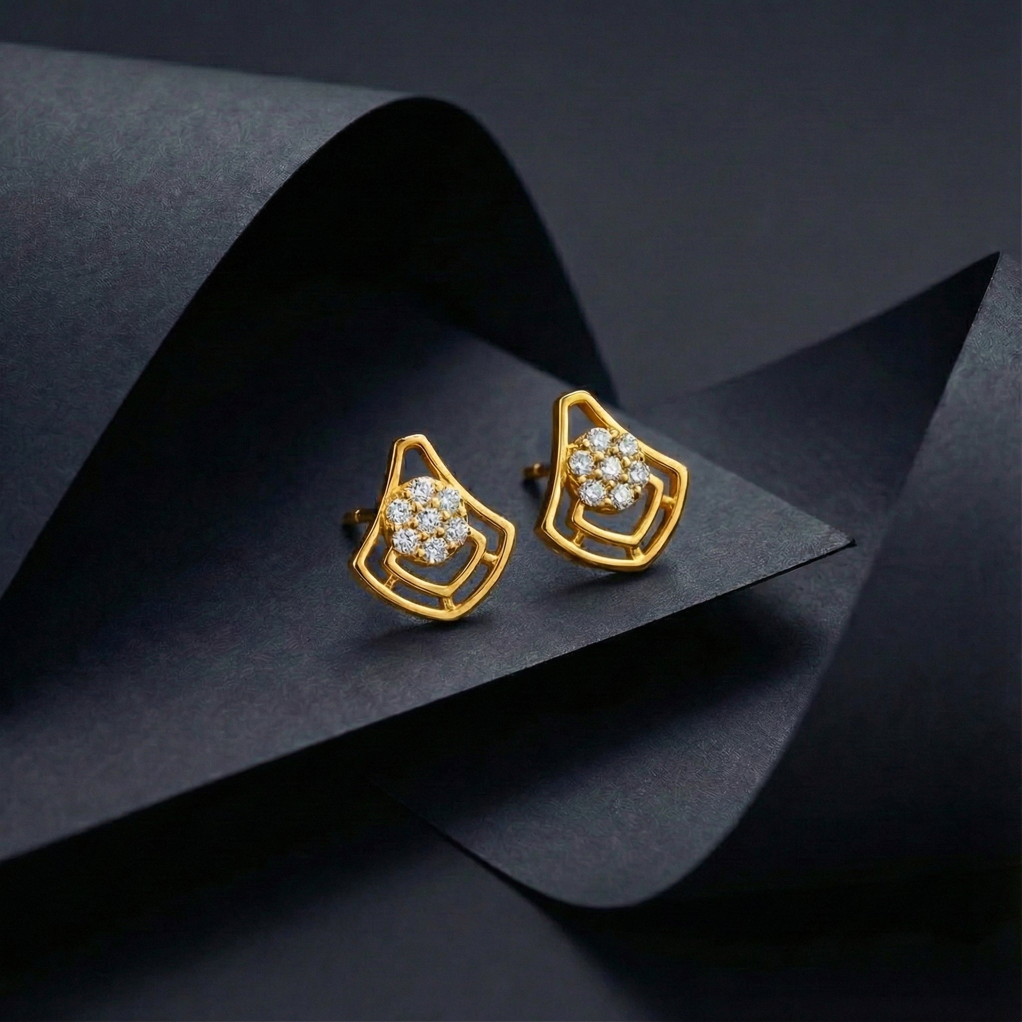 The unique kite-shaped frame holds a beautiful cluster of sparkling stones at its center, creating a design that is both trendy and timeless. They are the perfect little sparkle to wear when you want to feel polished, confident, and ready for whatever the day brings.