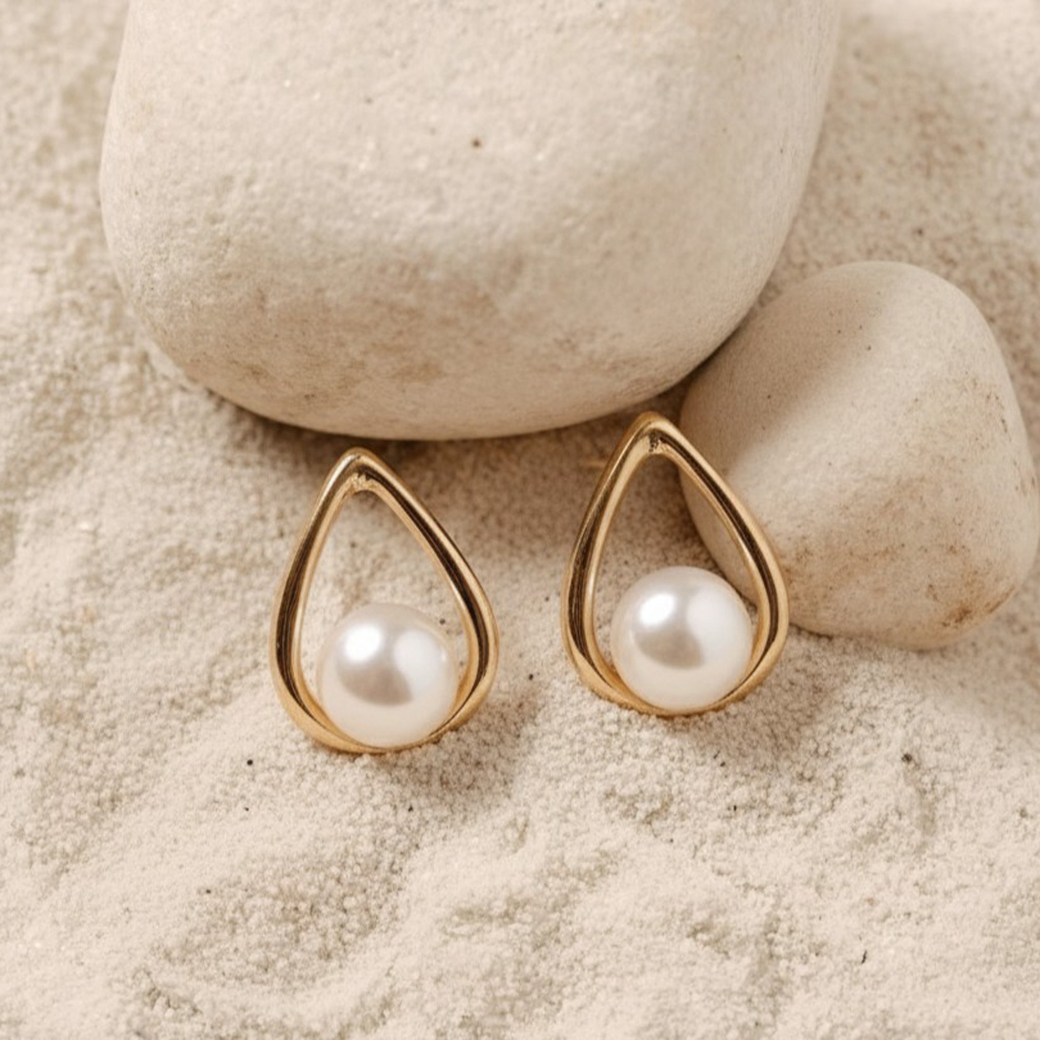 These aren't just earrings; they are a sweet and stylish addition to your daily routine. Each stud features a lustrous, creamy pearl nestled snugly inside a gleaming, graceful teardrop-shaped frame. They are a beautiful reminder to embrace your own inner glow, every single day.
