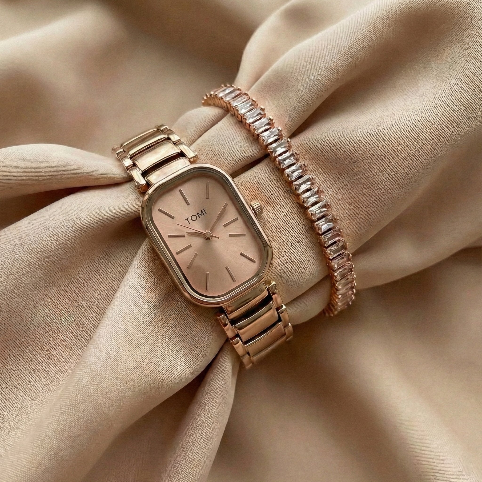 With its glowing rose gold finish and matching sparkling bracelet, this duo adds a touch of pure class to any outfit. It is perfect for both everyday wear and big celebrations, helping you feel graceful and polished with no effort at all. It’s the perfect simple luxury to help your style shine with timeless charm.
